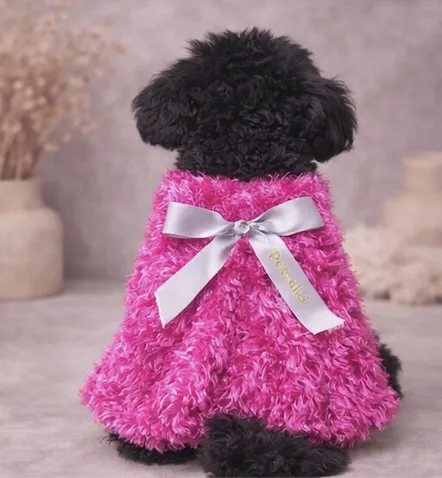 Características • Tejido bouclé cálido• Color rosa intenso• Lazo decorativo gris con logotipo• Falda con volumen• Libertad de movimiento para la mascota• Diseño exclusivo Pet.OlidTambién te recomendamos…