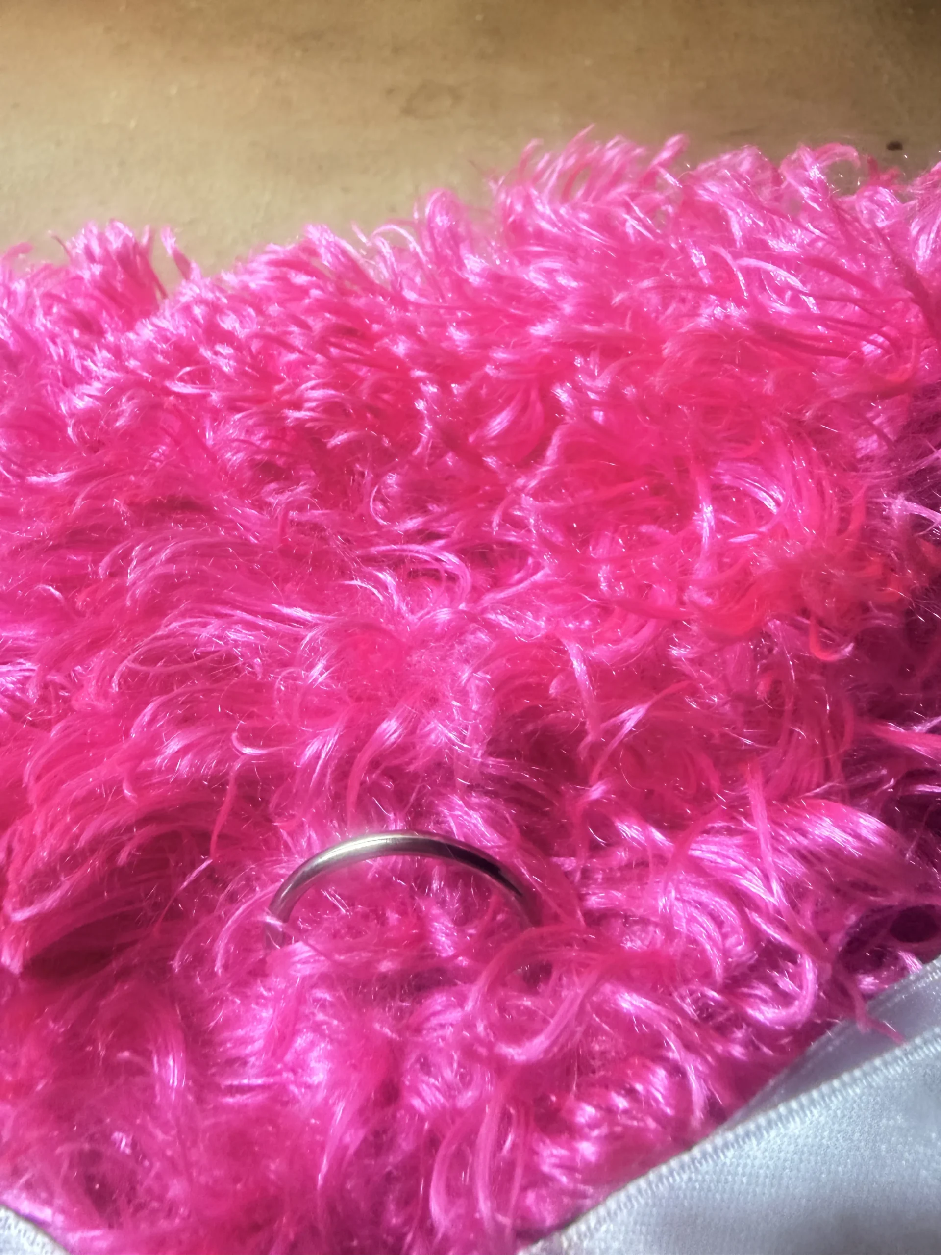 Está confeccionado en un tejido bouclé rosa suave y cálido, que proporciona abrigo y comodidad durante los paseos en los días más fríos.