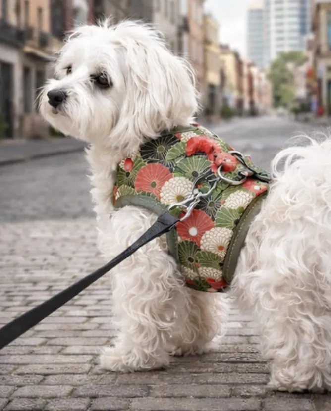 El Arnés Sensu Urbano combina diseño artístico, funcionalidad y elegancia contemporánea. Inspirado en patrones tradicionales orientales reinterpretados con una estética moderna, este arnés destaca por su estampado en tonos verdes, rojos y crema que aporta personalidad y sofisticación a cualquier paseo.
