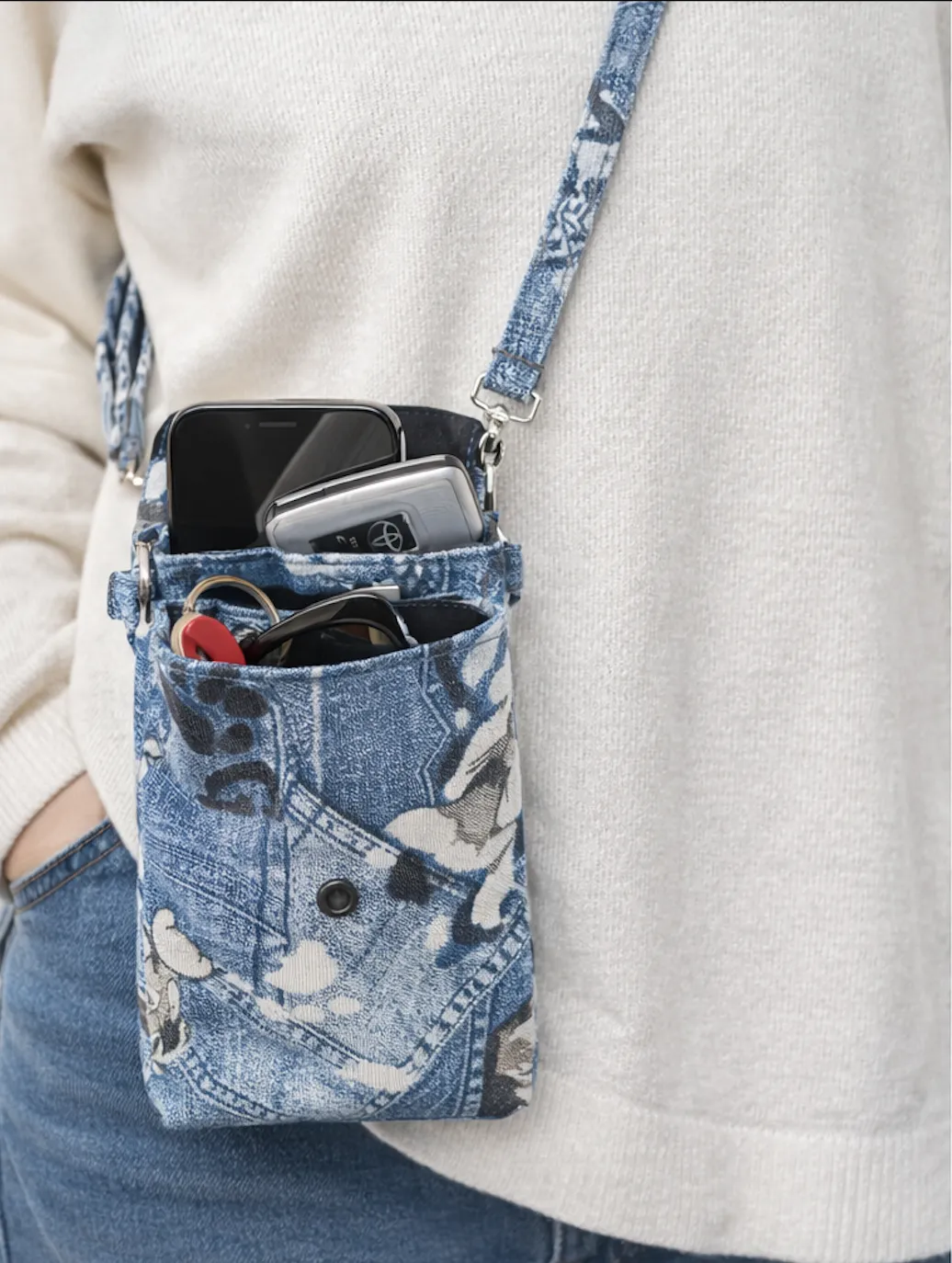 Bandolera cruzada para móvil compacta y ligera. Ideal para llevar smartphone grande, llaves y esenciales con comodidad, seguridad y estilo urbano en tu día a día.