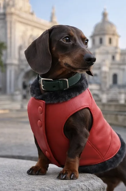 La cazadora Urban Luxe está diseñada para perros que destacan. Su acabado efecto piel en rojo intenso transmite personalidad y elegancia contemporánea.