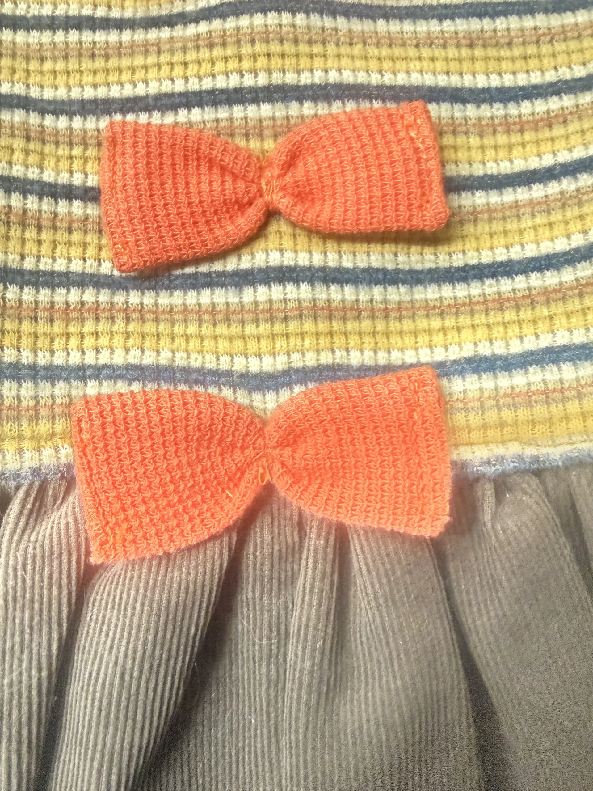 En la parte trasera, el vestido incorpora tres lazos decorativos en tono coral, un detalle distintivo que convierte esta prenda en una pieza única dentro de la colección.